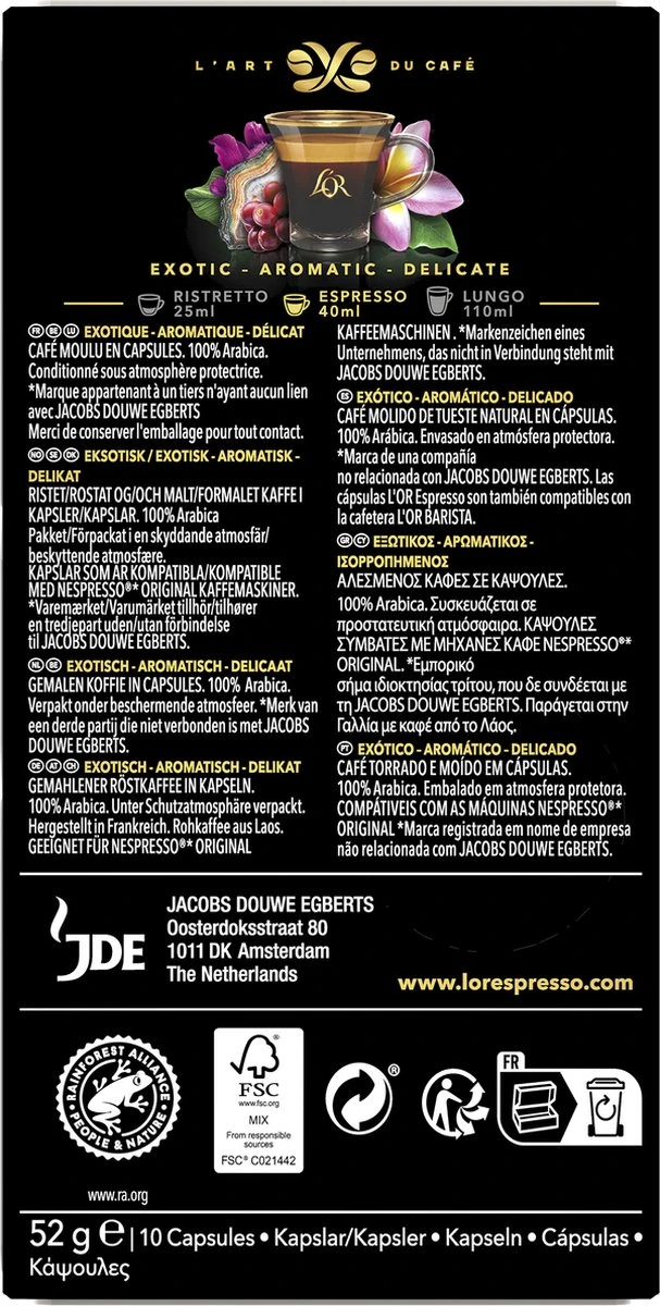 - Te gebruiken in L’OR BARISTA en Nespresso®* koffiemachines