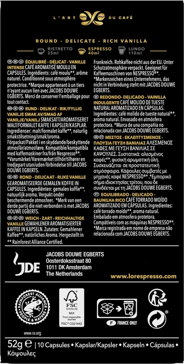 L’OR Espresso Vanille Koffiecups – 10 X 10 Capsules